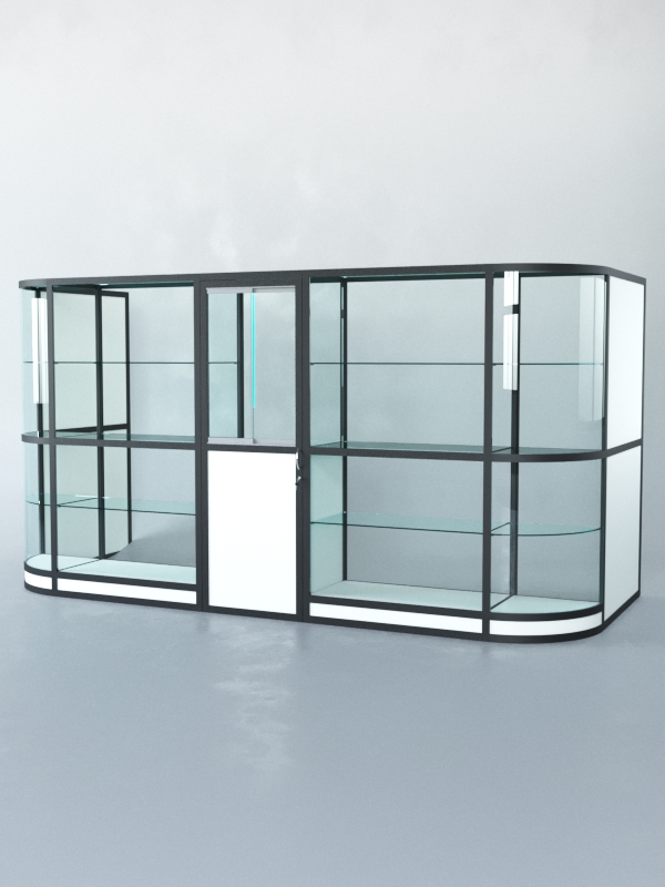 С внутренней стороны павильон полностью открытый, дверки отсутствуют в нижней и в верхней секциях. С фасадной стороны расположена входная дверь, в которой встроено окно выдачи и взаиморасчетов. Стеклянные раздвижные дверки окна выдачи закрываются на замок с внутренней стороны. Полка на уровне глухой части двери — откидная. Павильон без подсветки. Правая и левая стороны павильона из ДВП.
