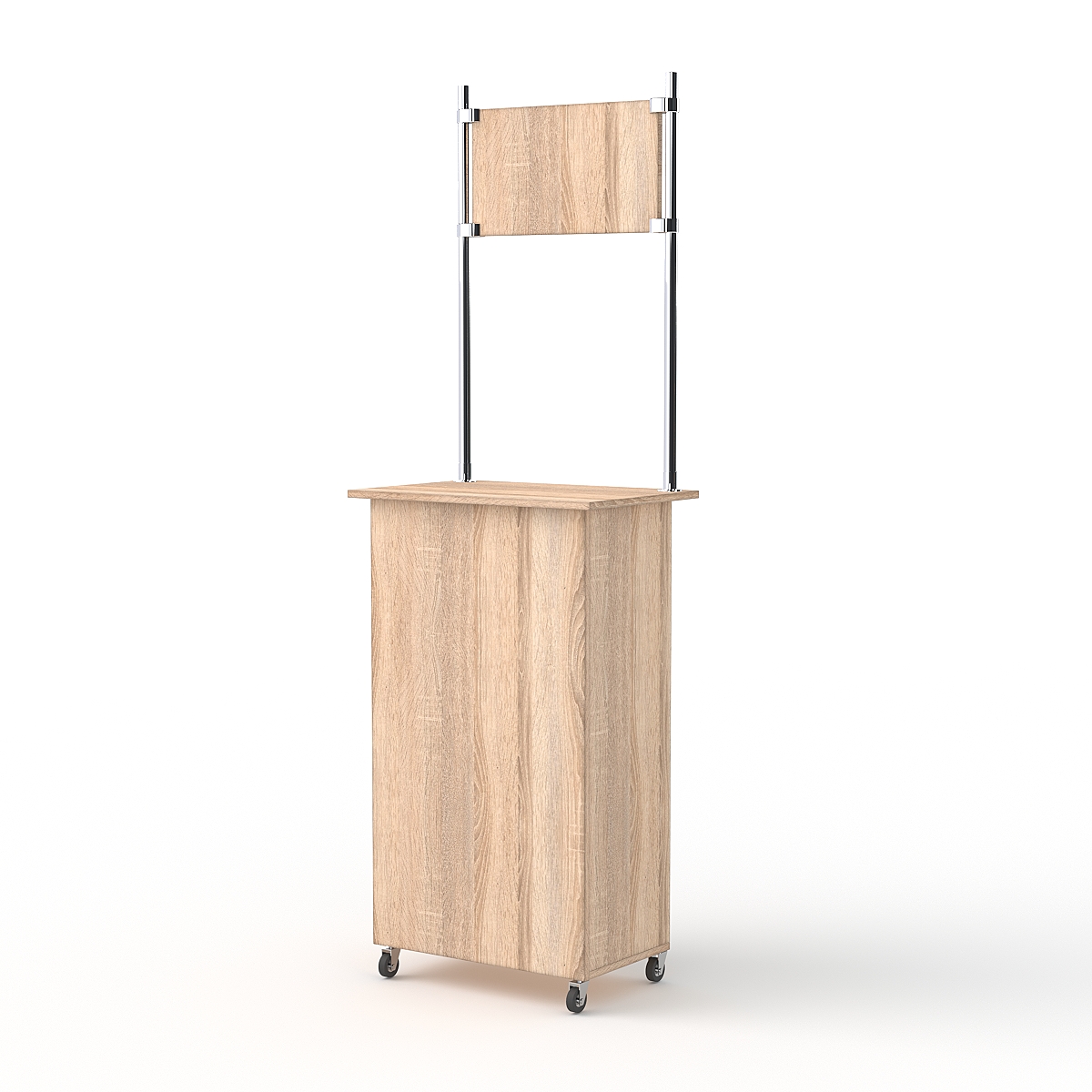 Верхнее поле позволяет разместить рекламный логотип. Мобильная стойка отлично подойдет для промо акций.