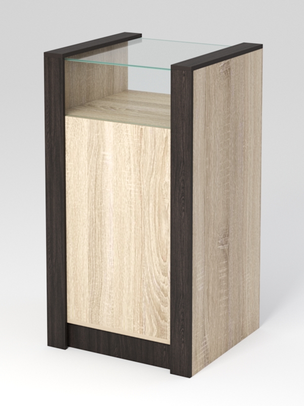 Прилавок №2-600 состоит из витрины и накопителя. Доступ к витрине расположен со стороны продавца. Корпус изготовлен из ЛДСП. Каркас и накладки выполнены в контрастных цветах. Возможно изготовление в другом цветовом сочетании, из списка представленных на сайте цветов.