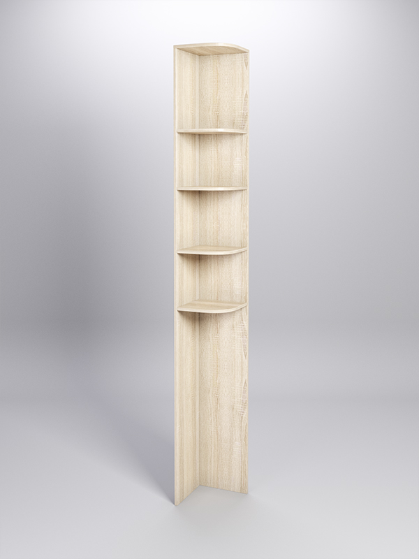 Конструкция состоит из двух панелей, соединенных под прямым углом, между которыми расположены четыре секторные полки.