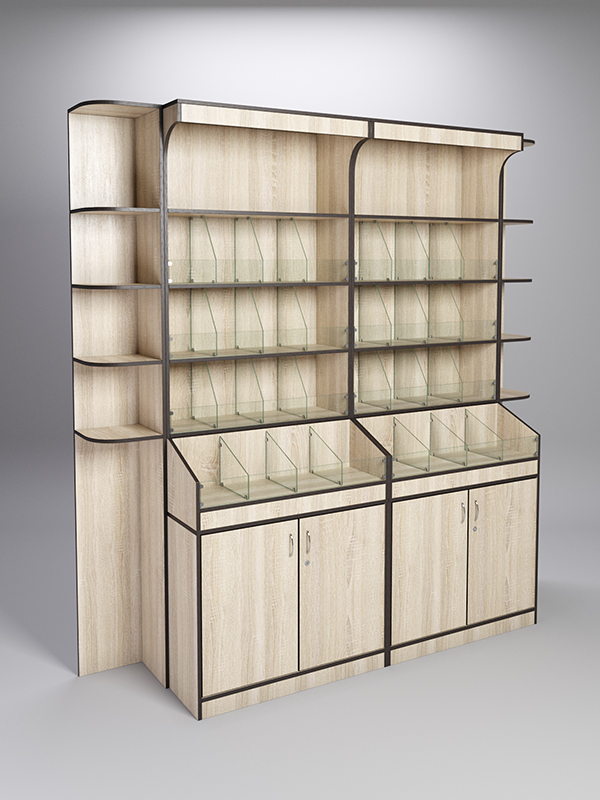 Данного рода стеллажи особенно хорошо подойдут для уютных уголков со специями и пряностями, небольших магазинчиков и отделов с орехами и сухофруктами. Вместительные ящики с покрытием под дерево в сочетании с полочками для соусов помогут создать атмосферу старинной деревенской лавки или маленьких семейных магазинчиков Южной Европы.