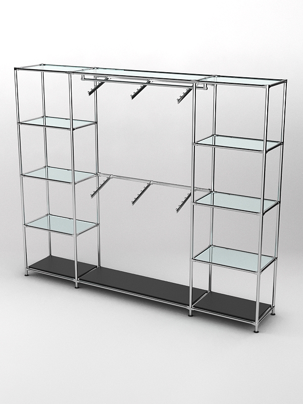 Торговая система Хром предназначена для демонстрации одежды и аксессуаров в магазинах и бутиках. Конструкция открыта со всех сторон, что очень удобно в тех случаях, когда у покупателя возникает желание более детально изучить товар.