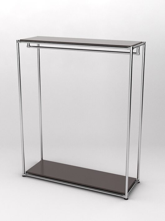 Торговый стенд — недорогой и эффективный способ продемонстрировать одежду, обувь и аксессуары в магазине одежды или в брендовом бутике. Система имеет металлический каркас на основе джокерной трубы. Содержит штангу для плечиков. Верхняя платформа и нижняя платформы выполнены из ДСП. Цвет подбирается в вариантах стандарт и на заказ. Равномерная нагрузка на штангу 10-12кг.