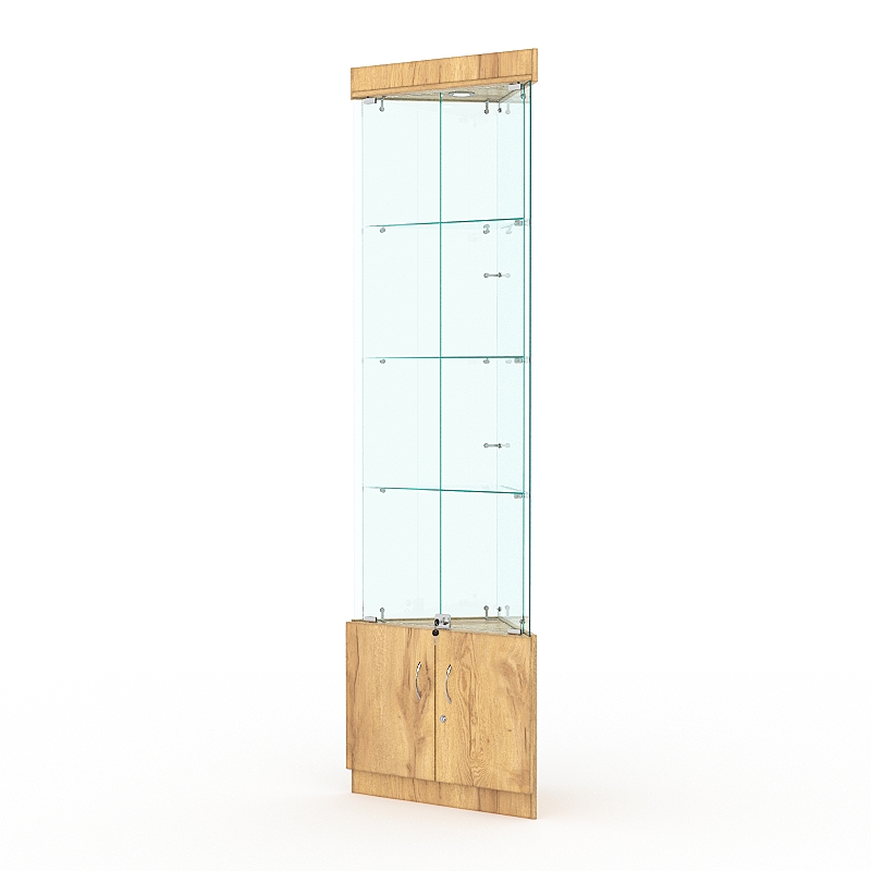 Витрина стеклянная ИСТРА угловая №1-У трехгранная (с дверками, бока — стекло), Дуб Золотистый