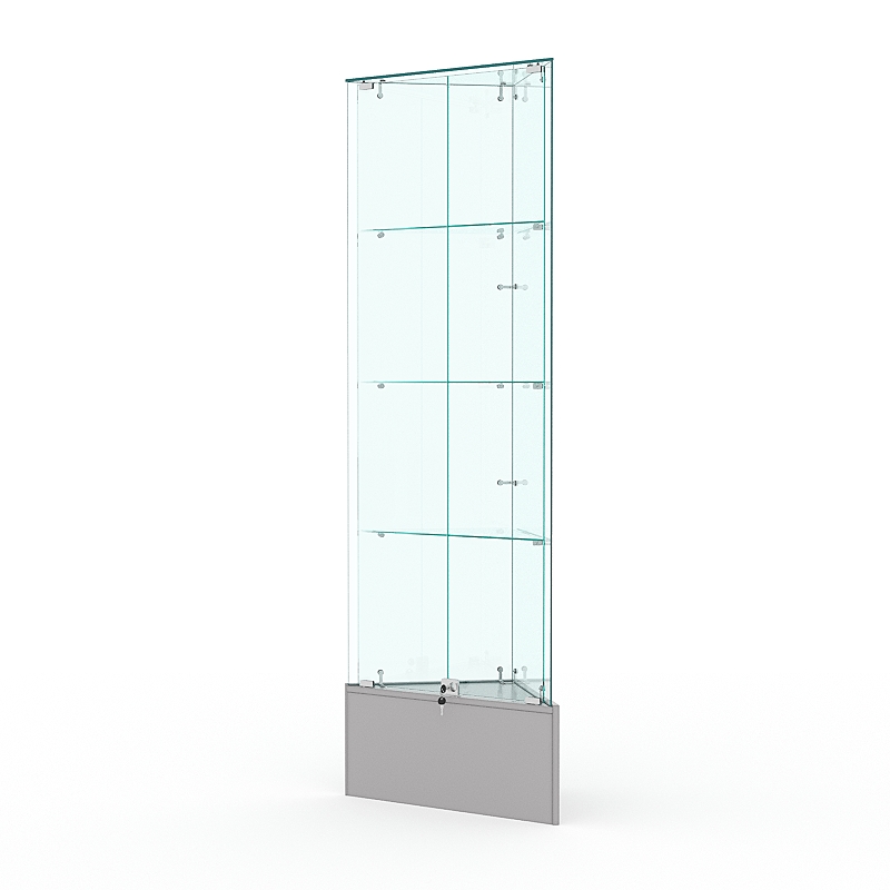Витрина стеклянная ИСТРА угловая №10-У трехгранная, (с дверками, бока — стекло), Серый