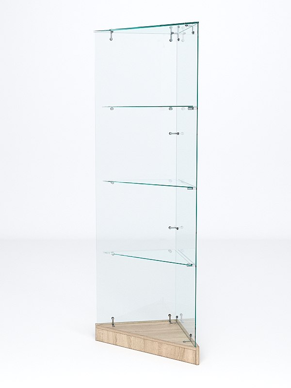 Витрина стеклянная "ИСТРА" угловая №2ХП-У трехгранная (без дверок, бока — стекло), Дуб Сонома