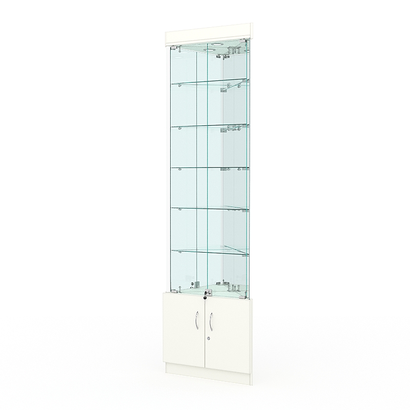 Витрина стеклянная ИСТРА угловая №503-У трехгранная (с дверками, бока — зеркало), Белый