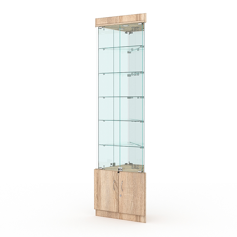 Витрина стеклянная ИСТРА угловая №503-У трехгранная (с дверками, бока — зеркало), Дуб Сонома