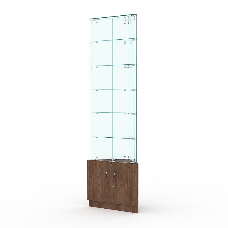 Витрина стеклянная ИСТРА угловая №505-У трехгранная (с дверками, бока — стекло), Орех