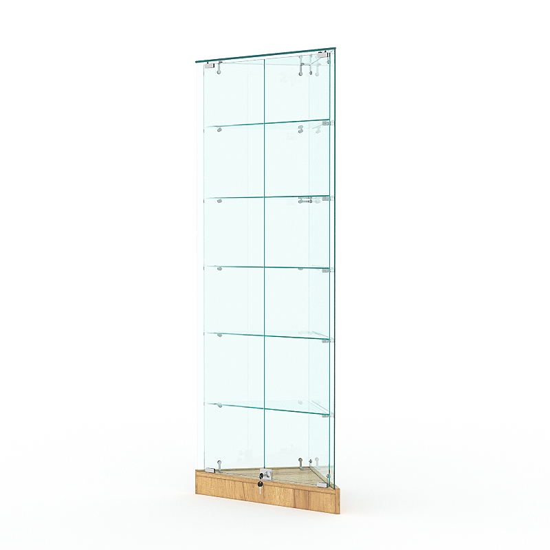 Витрина стеклянная ИСТРА угловая №501ХП-У трехгранная (с дверками, бока — стекло), Дуб Золотистый