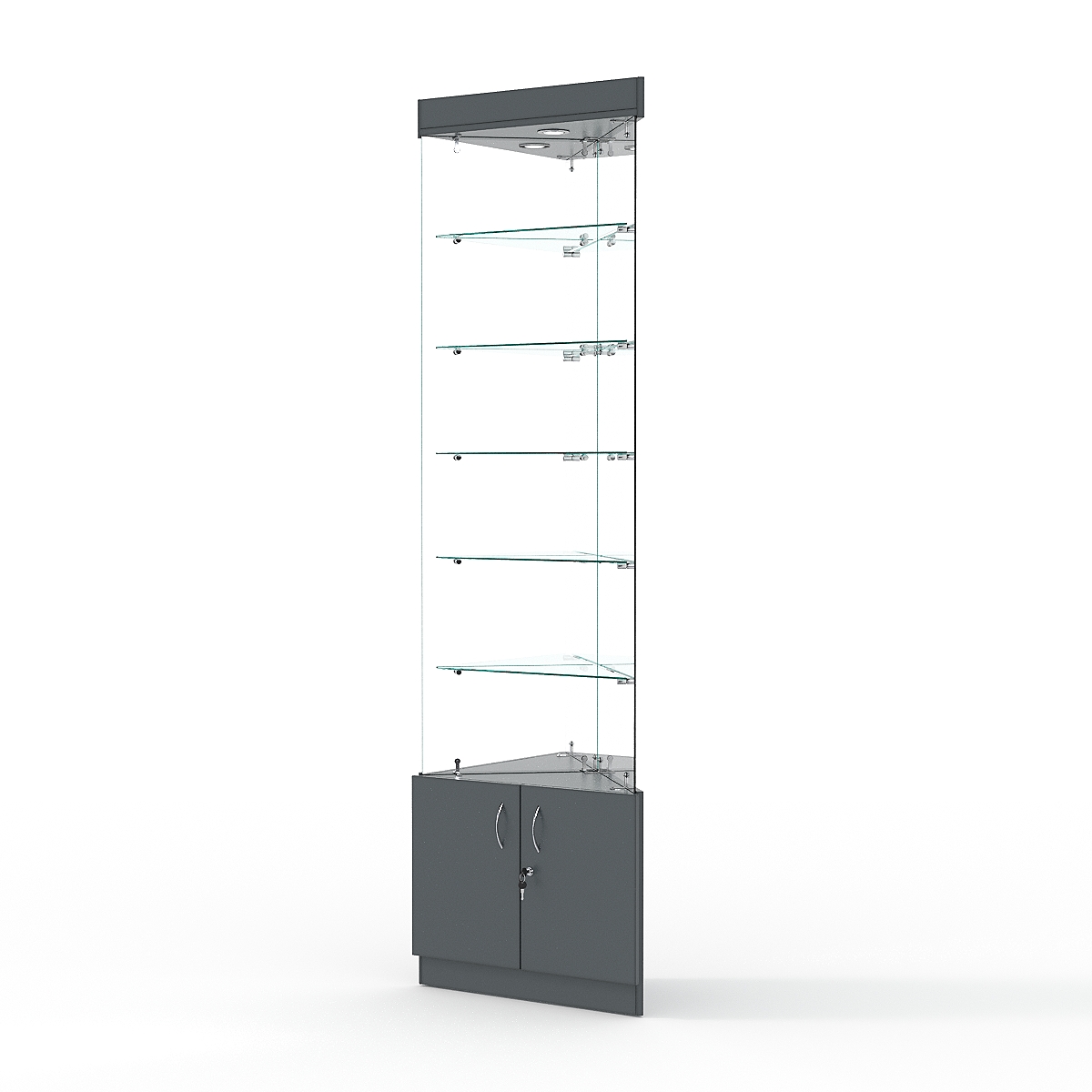 Витрина стеклянная ИСТРА угловая №603-У трехгранная (без дверок, бока — зеркало), Темно-Серый