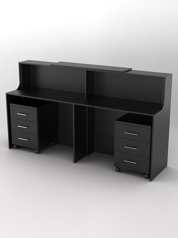 Ресепшен — это то, что входящий в помещение клиент видит в первую очередь. Не будет лишним сразу привлечь внимание клиента, чтобы ему было приятнее у Вас находиться. Ресепшн №10 имеет оригинальный дизайн, подойдет для двух администраторов, он миниатюрный, имеет у каждого столика по три ящика, верхние из которых сделаны под ключ.