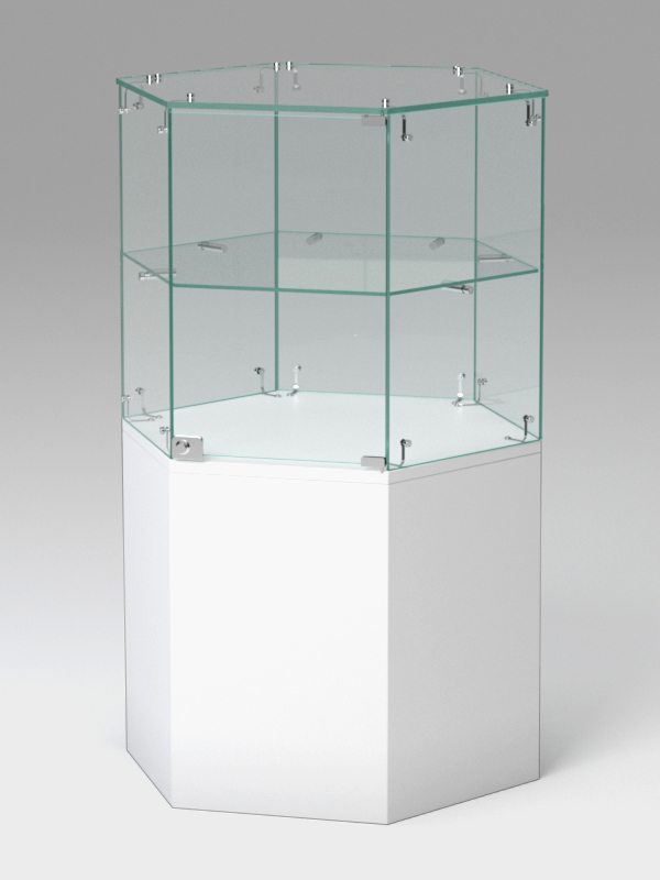 Прилавки данной серии выполнены в форме шестигранника, чем, несомненно, привлекают внимание. Контрастные по цвету панели из ЛДСП, кристально прозрачные витрины, блестящая фурнитура — все это выглядит элегантно и стильно. Прилавки могут сочетаться в любых комбинациях и в любом количестве. Нагрузка на стеклянные полки — 5-7кг при равномерном распределении предметов.