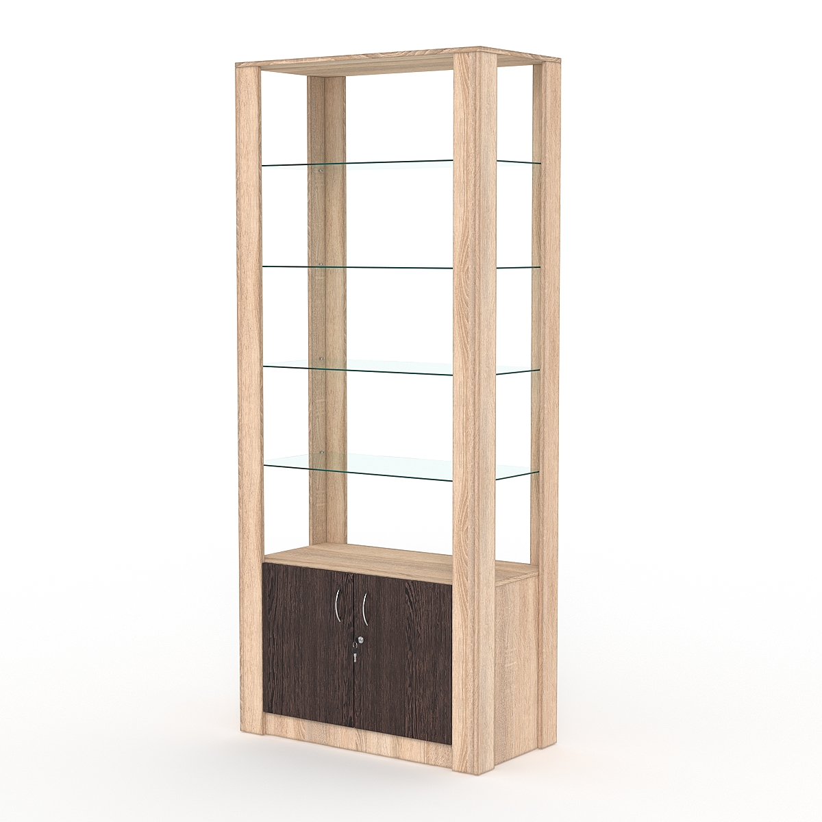 Стеклянные дверки в верхней секции отсутствуют, витрина полностью открытая.