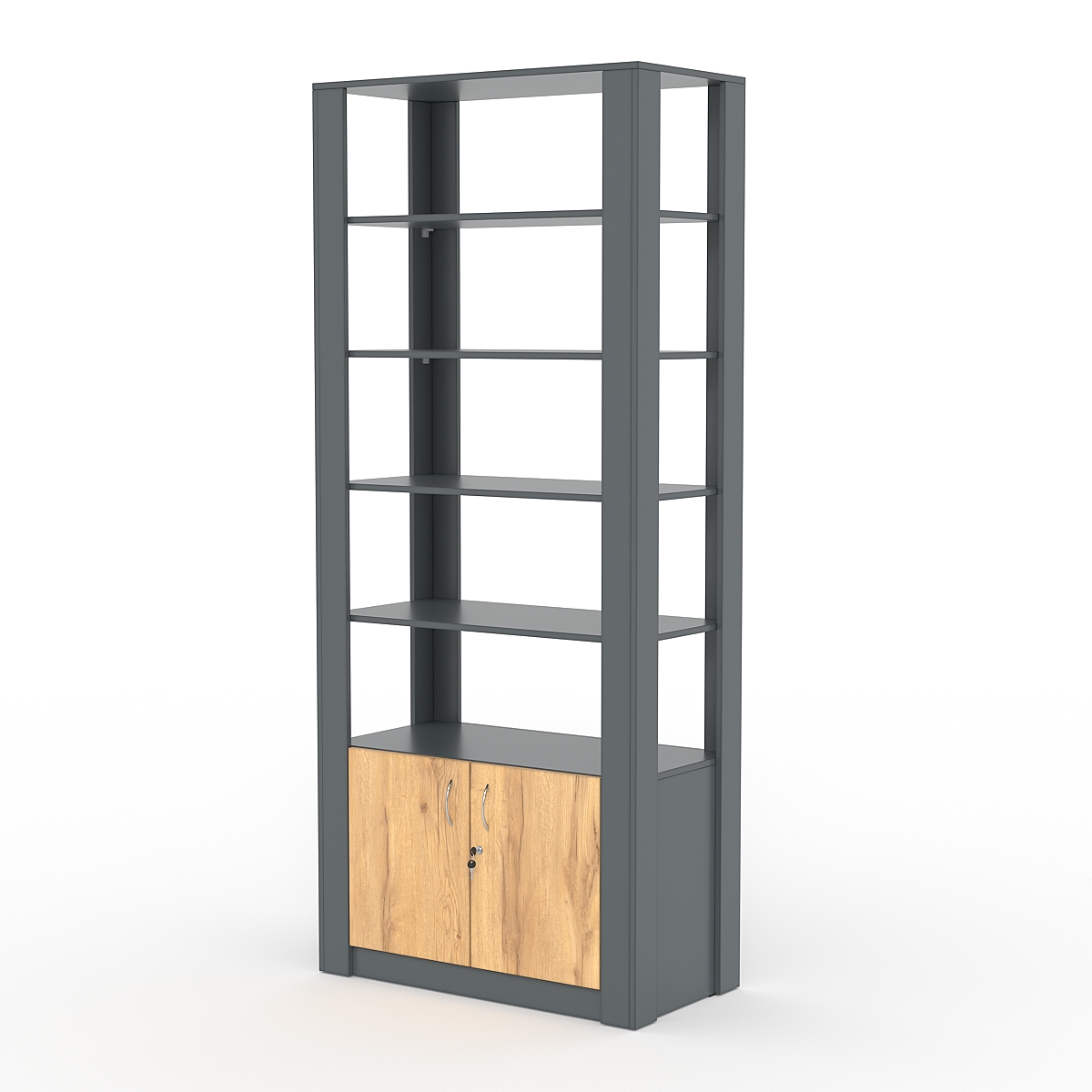 Витрина "МОДЕРН" №2 (без дверок, открытая по периметру), Темно-серый и Дуб Золотистый