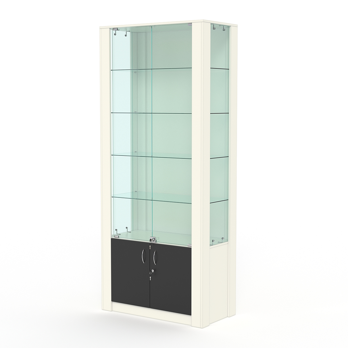 Стеклянные дверки в верхней секции — стекло 5мм, закрываются на замок.