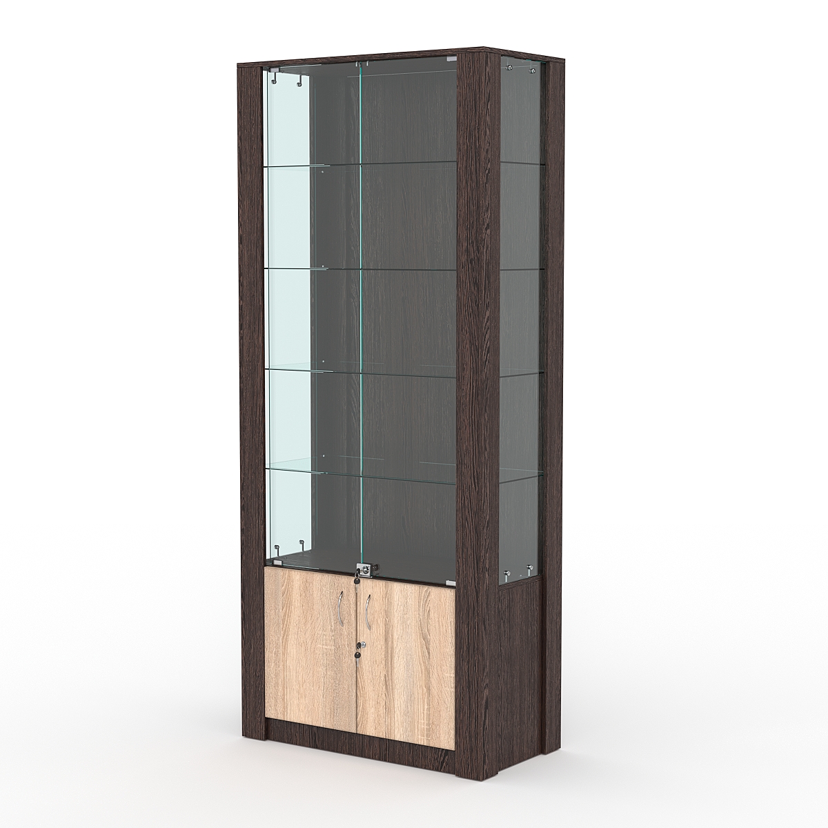 Стеклянные дверки в верхней секции — стекло 5мм, закрываются на замок.