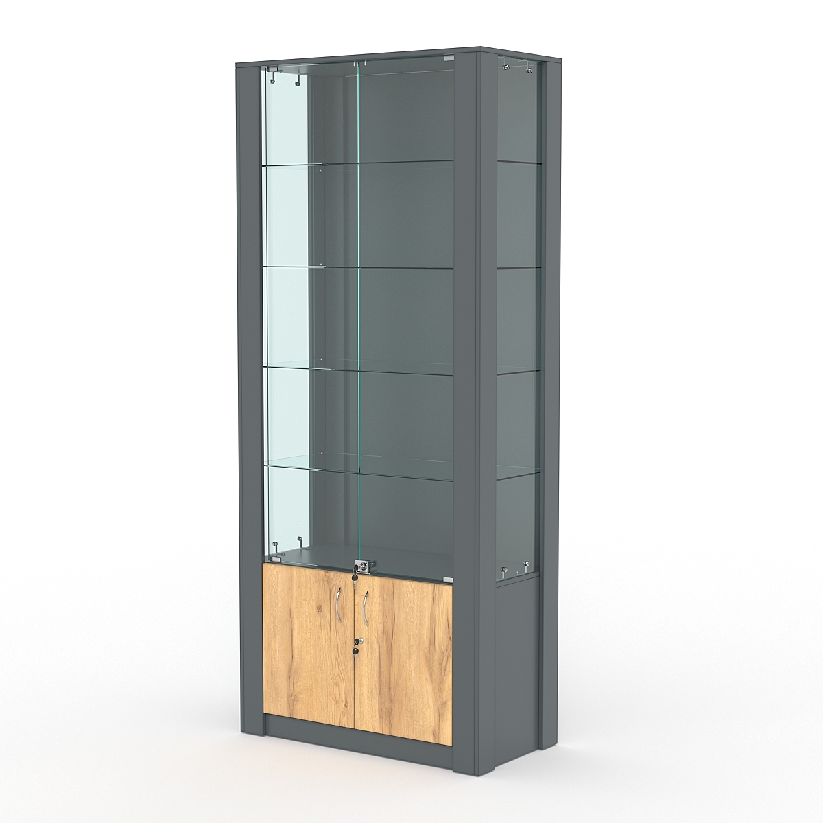 Витрина "МОДЕРН" №3 (с дверками, задняя стенка — ДВП), Темно-серый и Дуб Золотистый