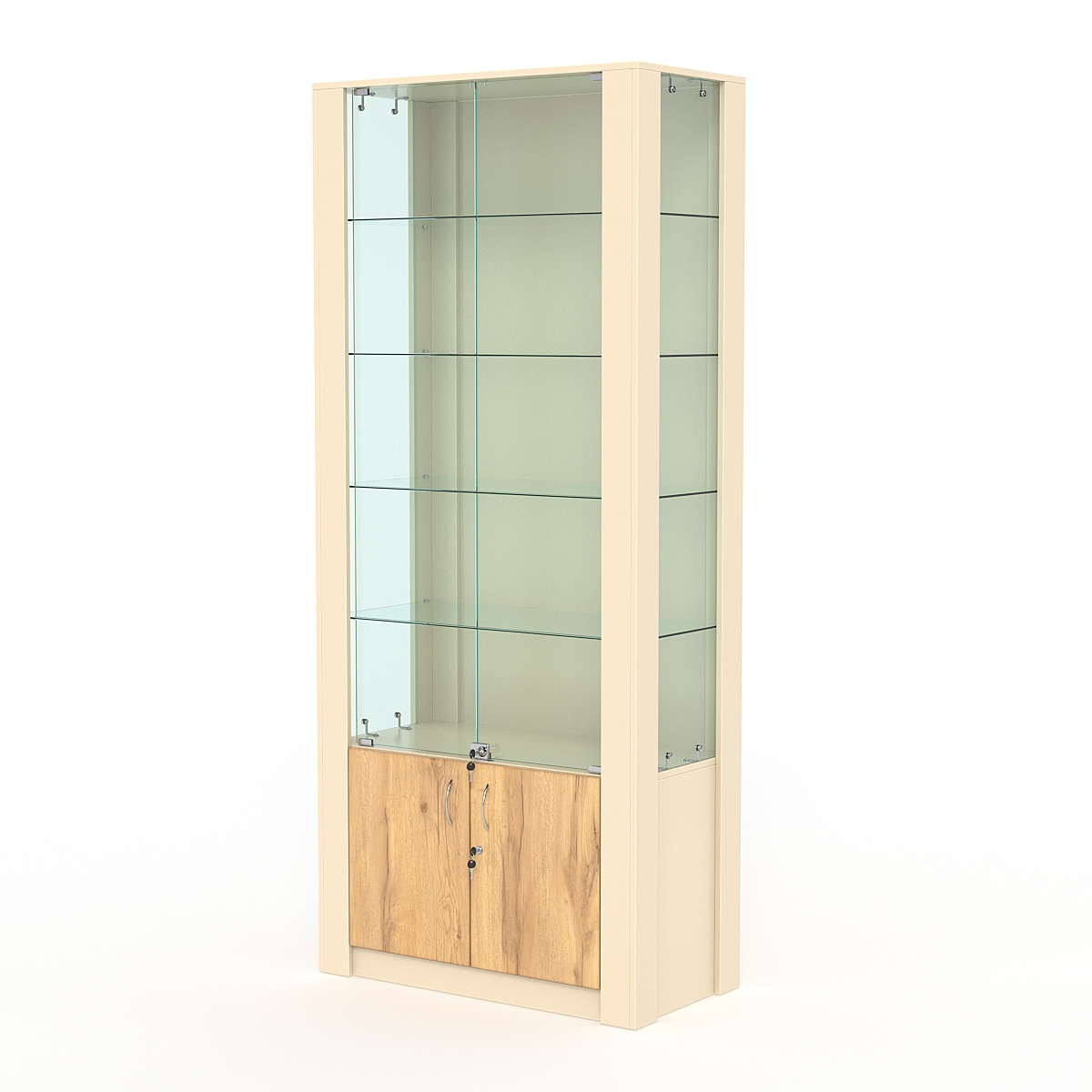 Витрина "МОДЕРН" №3 (с дверками, задняя стенка — ДВП), Крем Вайс и Дуб Золотистый