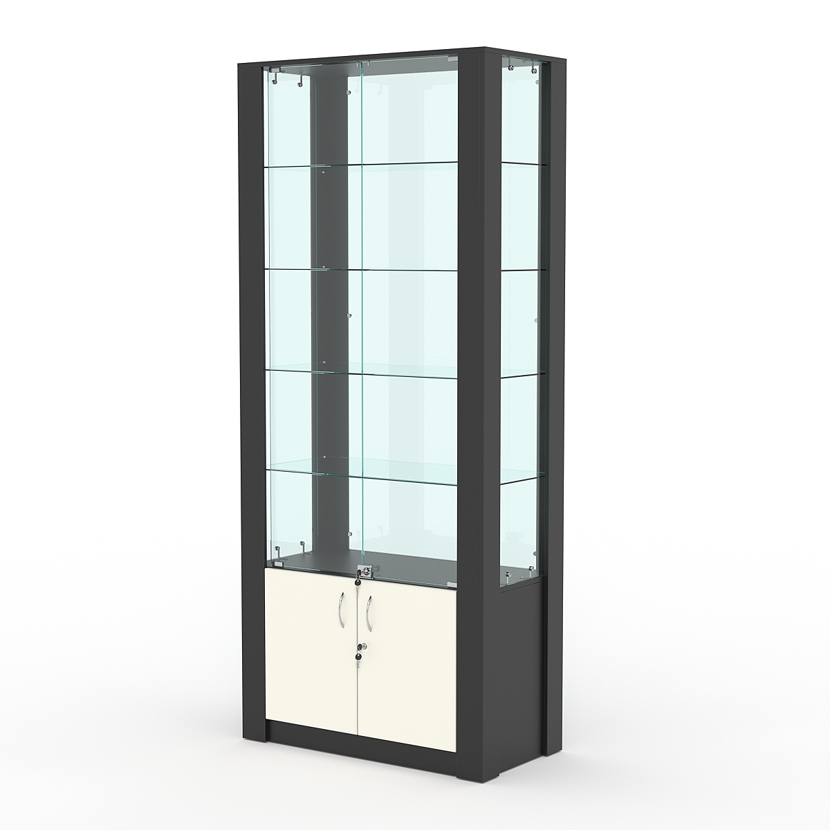 Стеклянные дверки в верхней секции — стекло 5мм, закрываются на замок.