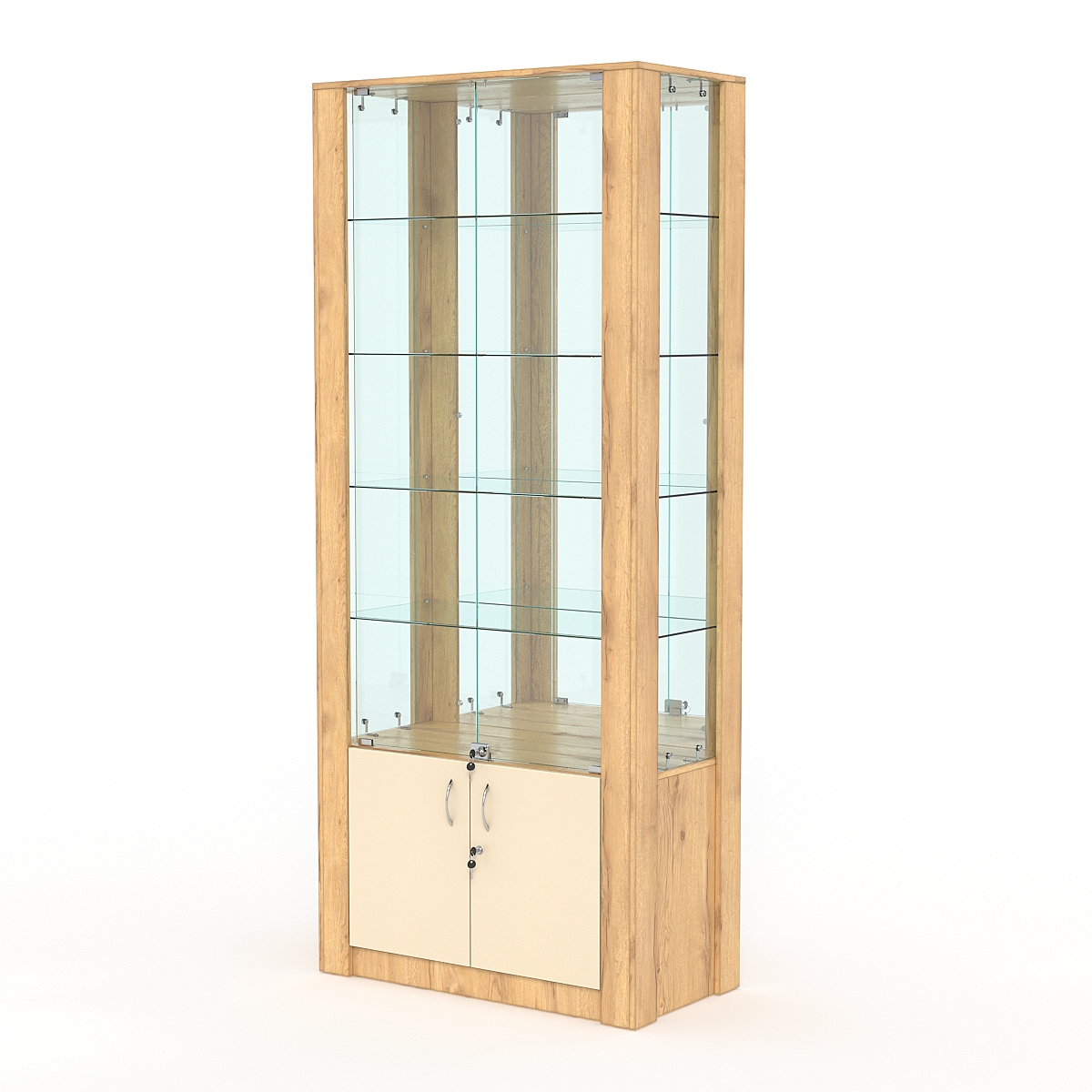 Витрина МОДЕРН №5 (с дверками, задняя стенка — зеркало), Дуб Золотистый и Крем Вайс