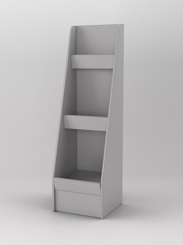 Стеллаж для магазинов из ЛДСП на 3 секции для продажи свежего хлеба. Удобная планировка позволяет выделить товарные позиции в торговом зале.