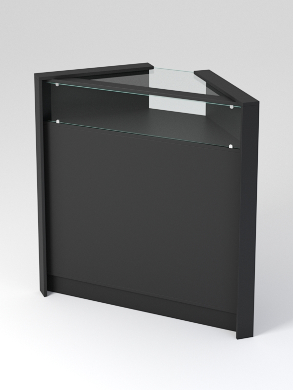 Прилавок №5 представляет собой угловую конструкцию, содержащую витрину и накопитель. Доступ к витрине расположен со стороны продавца. Корпус изготовлен из ЛДСП. Каркас и накладки выполнены в контрастных цветах. Возможно изготовление в другом цветовом сочетании, из списка представленных на сайте цветов.