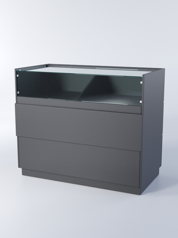 Прилавки Рона, выполненные в черно-белой гамме, сочетают в себе изысканность и стиль. Каркас прилавков производится из ЛДСП, витринная часть стеклянная. Полки-ящики выдвигаютя с внутренней стороны. Такой прилавок подойдет для ювелирных изделий, дорогой бижутерии, часов, сувениров и другой ценной продукции.