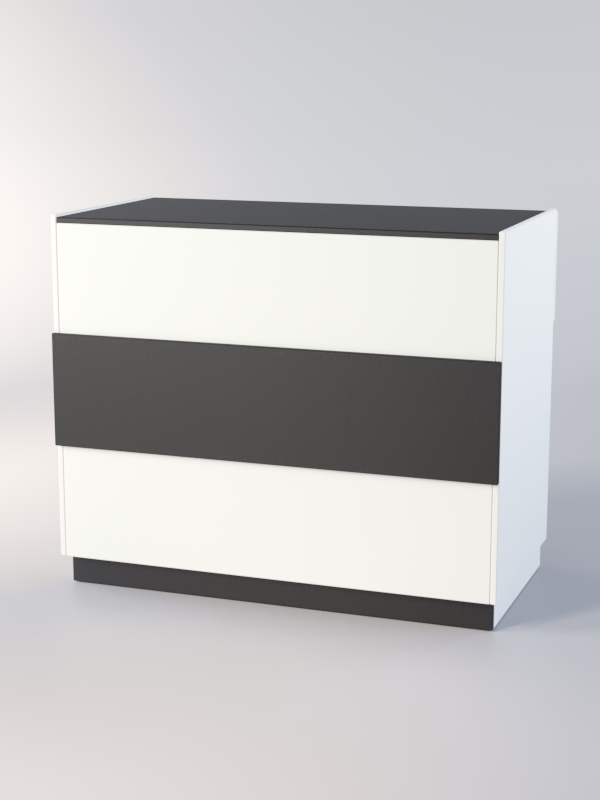 Прилавки Рона, выполненные в черно-белой гамме, сочетают в себе изысканность и стиль. Каркас прилавков производится из ЛДСП, витринная часть стеклянная. Полки-ящики выдвигаютя с внутренней стороны. Такой прилавок подойдет для ювелирных изделий, дорогой бижутерии, часов, сувениров и другой ценной продукции.