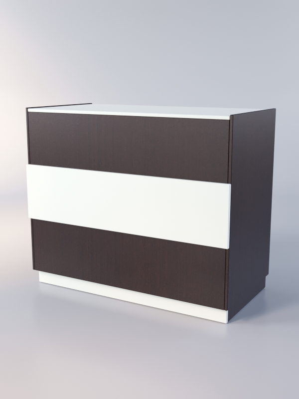 Закрытый прилавок. Внутренняя сторона состоит из двух отделений. Каждое отделение содержит полку из ЛДСП.