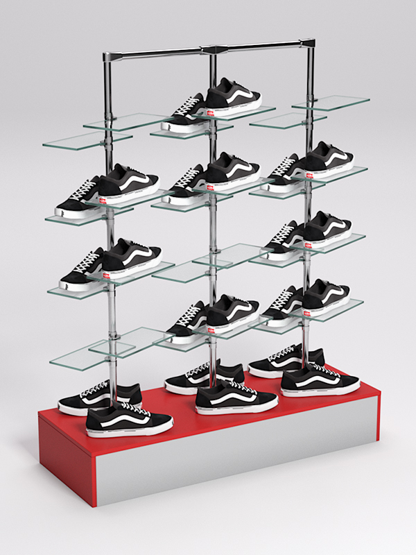 Оборудование для демонстрации обуви должно быть достаточно прочным и устойчивым. Учитывая эти требования, мы производим наши стойки из материалов, обладающих соответствующими характеристиками. В основании стойки находится подставка из ДСП — прочного, износостойкого материала, идеально вписывающегося в любой интерьер. Каркас выполнен из джокерной трубы, также отличающейся прочностью и эстетикой. К трубе крепятся стеклянные полки для размещения обуви.