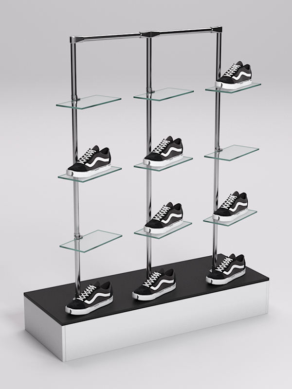 Оборудование для демонстрации обуви должно быть достаточно прочным и устойчивым. Учитывая эти требования, мы производим наши стойки из материалов, обладающих соответствующими характеристиками. В основании стойки находится подставка из ДСП — прочного, износостойкого материала, идеально вписывающегося в любой интерьер. Каркас выполнен из джокерной трубы, также отличающейся прочностью и эстетикой. К трубе крепятся стеклянные полки для размещения обуви.