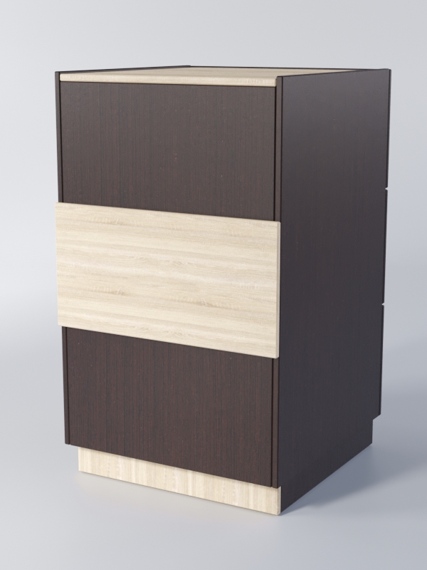 Прилавок полностью закрыт со стороны покупателя. Имеет три выдвижных накопителя. Накопители оборудованы замками. Каркас можно изготовить в другом цветовом сочетании, выбрав варианты, перечисленные на сайте.