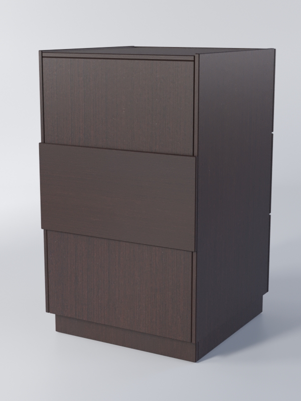 Прилавок полностью закрыт со стороны покупателя. Имеет три выдвижных накопителя. Накопители оборудованы замками. Каркас можно изготовить в другом цветовом сочетании, выбрав варианты, перечисленные на сайте.