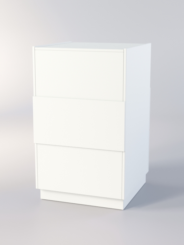 Прилавок полностью закрыт со стороны покупателя. С внутренней стороны имеет одно отделение и два выдвижных накопителя. Накопители оборудованы замками. Каркас можно изготовить в другом цветовом сочетании, выбрав варианты, перечисленные на сайте.