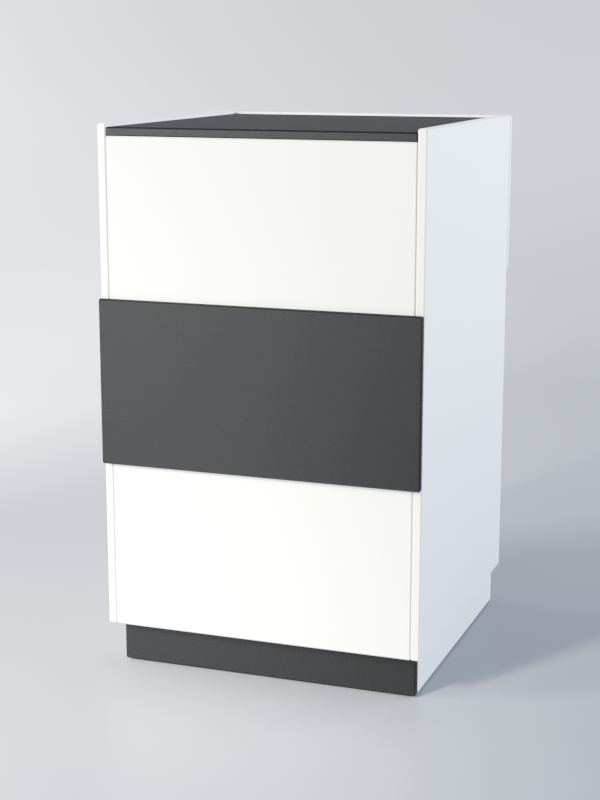 Прилавок полностью закрыт со стороны покупателя. С внутренней стороны имеет одно отделение и выдвижной накопитель, оборудованный замком. Каркас можно изготовить в другом цветовом сочетании, выбрав варианты, перечисленные на сайте.