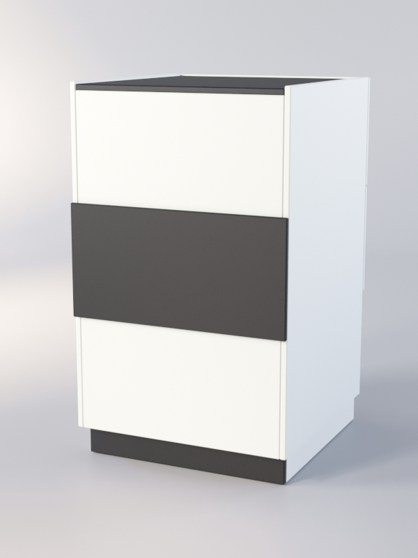 Прилавок полностью закрыт со стороны покупателя. С внутренней стороны имеет одно отделение и два выдвижных накопителя, оборудованных замком. Каркас можно изготовить в другом цветовом сочетании, выбрав варианты, перечисленные на сайте.