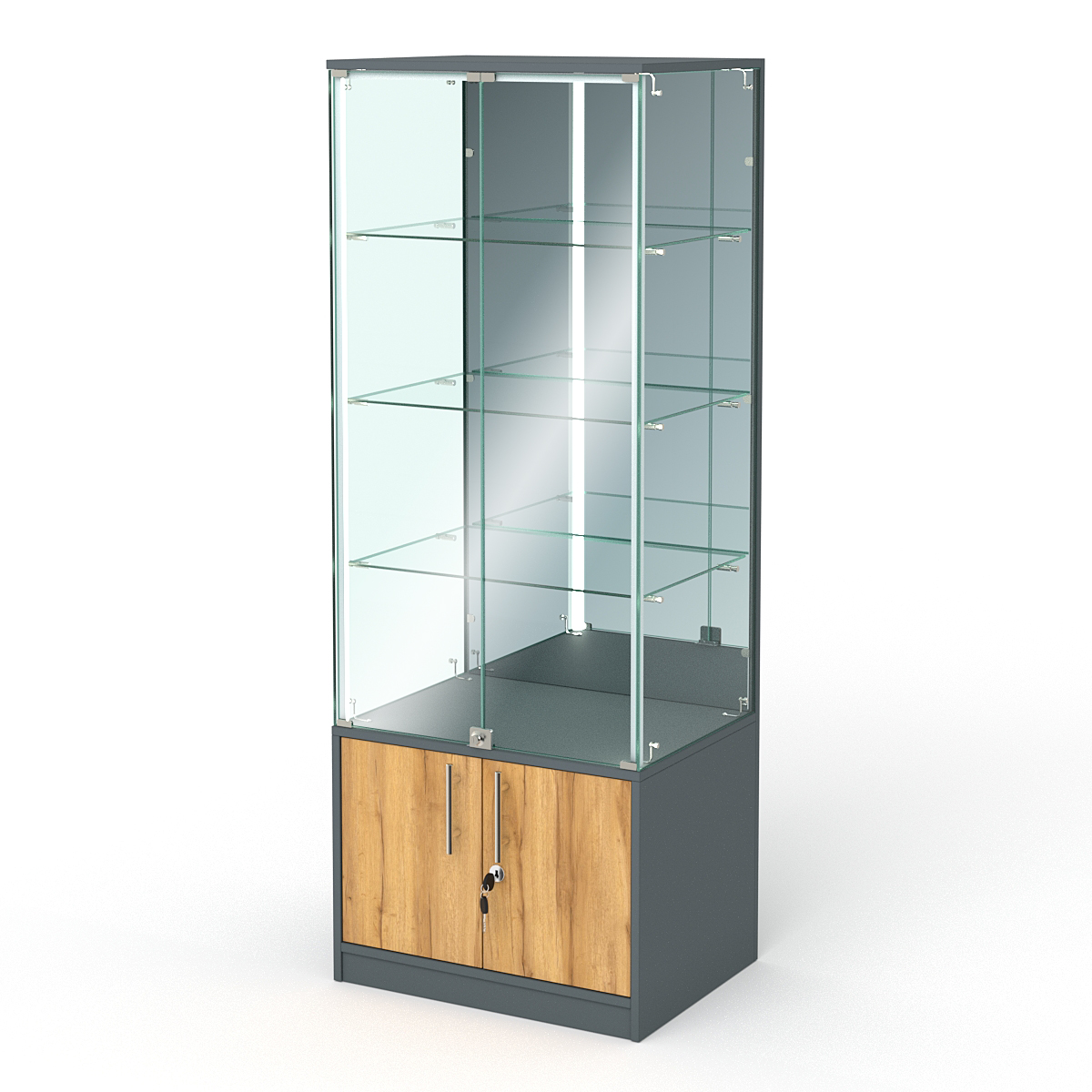 Тумба-накопитель для витрины со смартфонами нужна для хранения сопутствующих товаров и аксессуаров, которые покупатели могут приобрести вместе со смартфоном. Это могут быть чехлы, защитные стёкла, наушники, зарядные устройства и другие аксессуары.