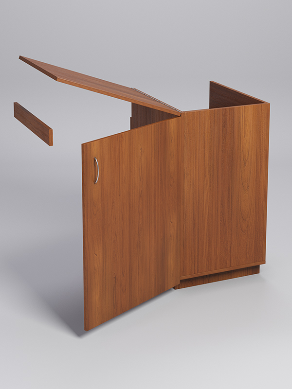 Прилавок с дверью-хлопушкой — это разновидность кассового прилавка, который оснащён подвижной дверью и опускающейся полкой из ЛДСП.