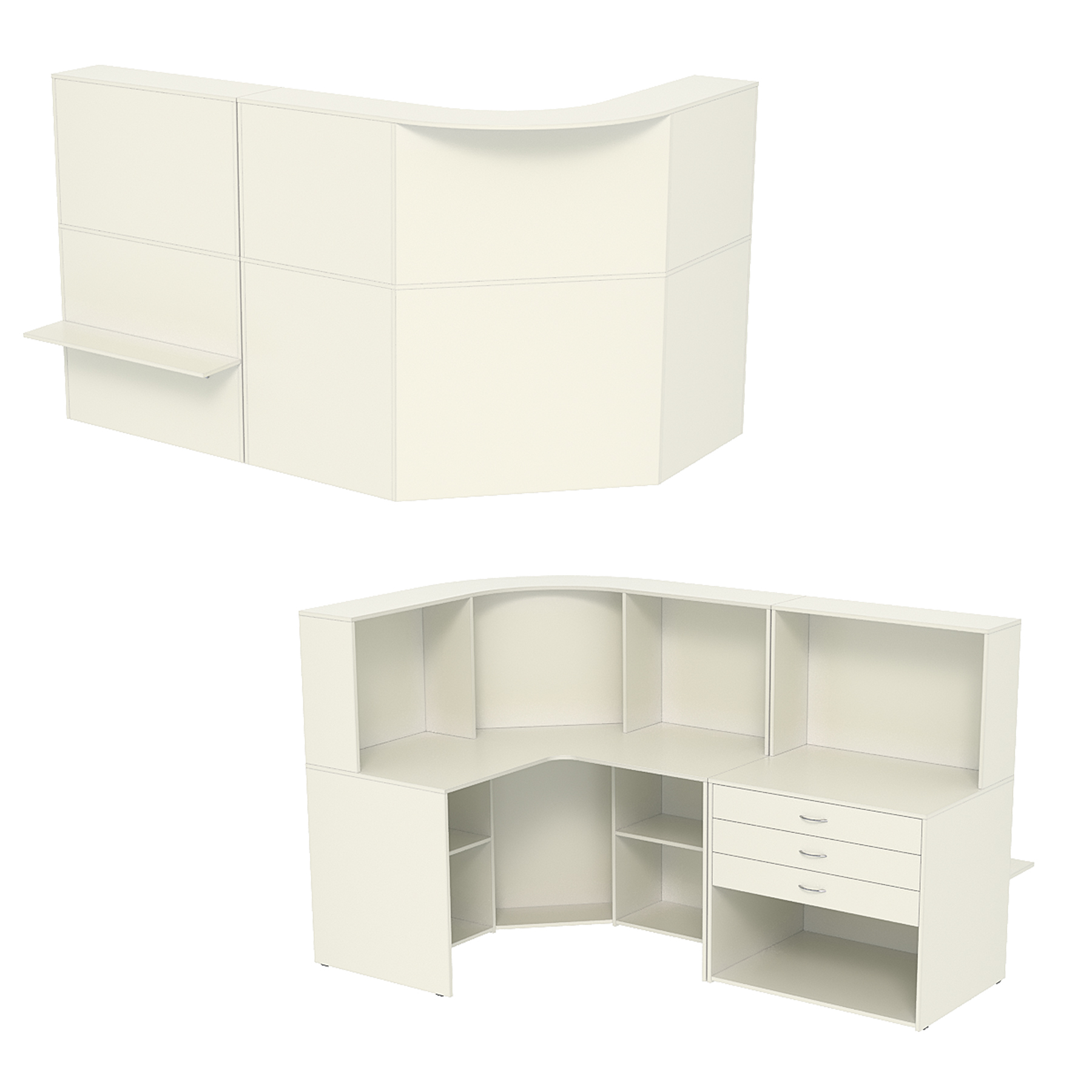 Ресепшены серии «ИНСТАЙЛ» разрабатывались на базе серии ресепшенов «СТАЙЛ». Отличаются высотой и конструктивом. Высота данной серии 1300мм. Угловой и прямой ресепшены замечательно стыкуются в ряд позволяя обыграть угловые площади.