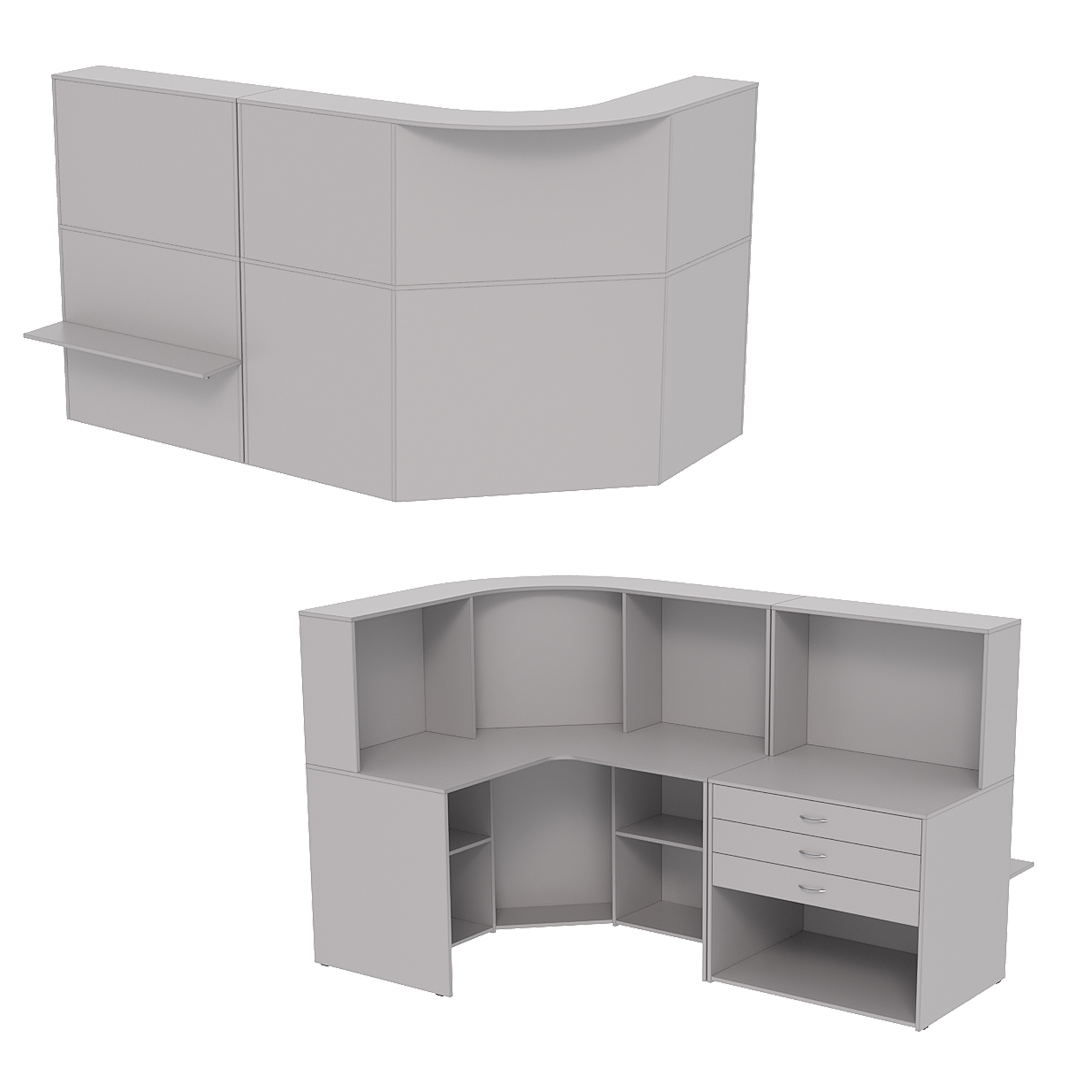 Ресепшены серии «ИНСТАЙЛ» разрабатывались на базе серии ресепшенов «СТАЙЛ». Отличаются высотой и конструктивом. Высота данной серии 1300мм. Угловой и прямой ресепшены замечательно стыкуются в ряд позволяя обыграть угловые площади.