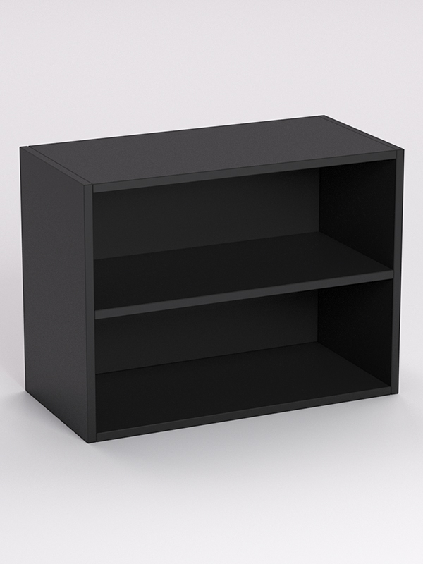 Стеллаж представляет собой открытый квадратный шкаф, с полкой в центре.