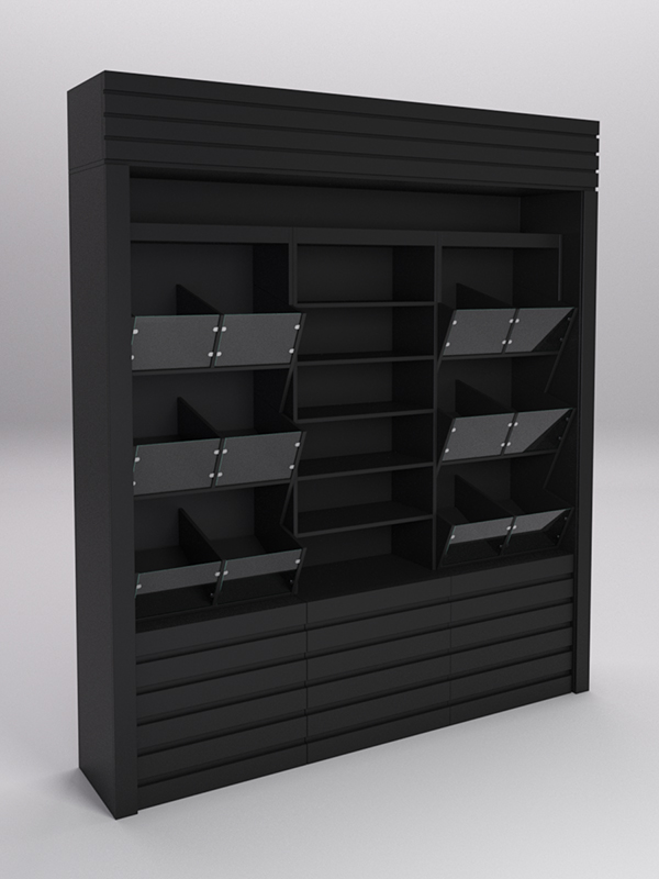 Комплект стеллажей для продуктовых магазинов. Данное торговое оборудование предназначено для раскладки различных сладостей, орехов и сухофруктов, а также других кондитерских изделий в комплексе или для небольших отделов в торговом центре.