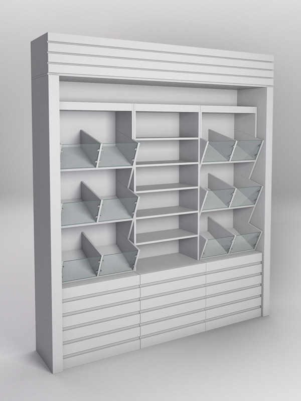Комплект стеллажей для продуктовых магазинов. Данное торговое оборудование предназначено для раскладки различных сладостей, орехов и сухофруктов, а также других кондитерских изделий в комплексе или для небольших отделов в торговом центре.