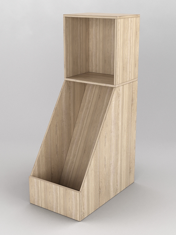 Комплект включает два модуля — прямой и наклонный. Каркас выполнен из ЛДСП. Цвет представлен в семи стандартных вариантах. Другие цвета подбираются в палитре на заказ.
