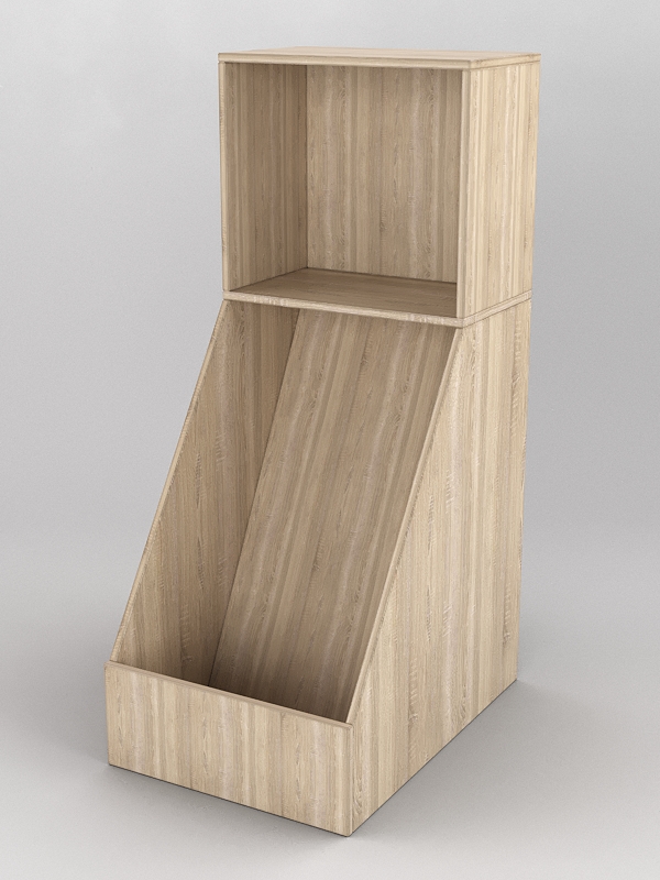 Комплект включает два модуля — прямой и наклонный. Каркас выполнен из ЛДСП. Цвет представлен в семи стандартных вариантах. Другие цвета подбираются в палитре на заказ.