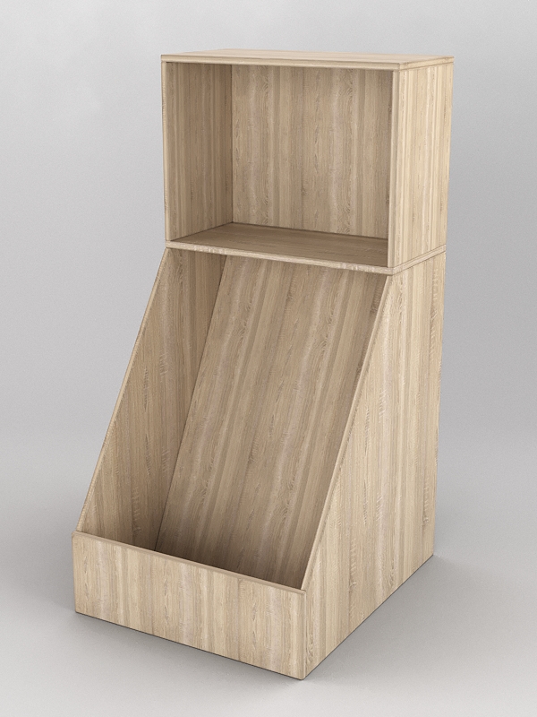 Комплект включает два модуля — прямой и наклонный. Каркас выполнен из ЛДСП. Цвет представлен в семи стандартных вариантах. Другие цвета подбираются в палитре на заказ.