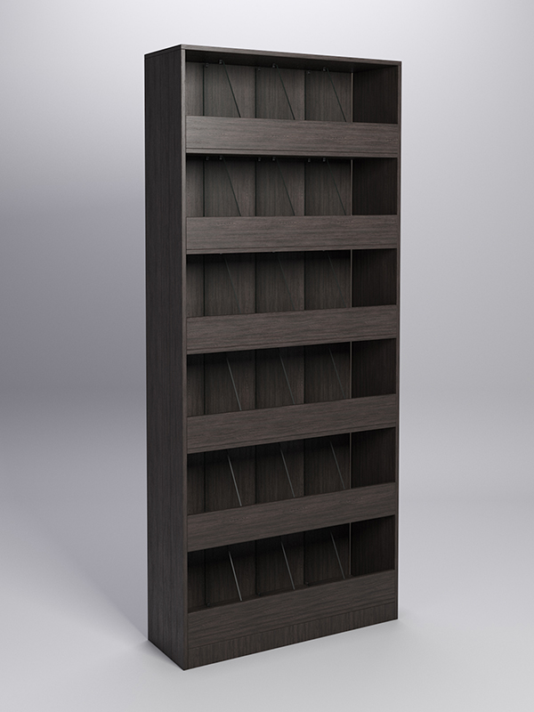 Стеллаж для конфет и орехов представляет из себя комбинацию Стеллажа «Эконом» №1 и вставок-конфетниц, которые являются отдельными элементами конструкции и ставятся на полки стеллажа. Ширина каждой застекленной ячейки — 205мм, высота каждой ячейки — 345мм. Общее кол-во ячеек в представленном стеллаже — 16 шт.
