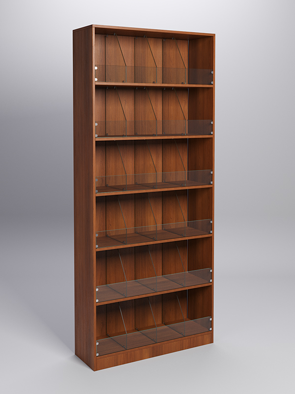 Стеллаж для конфет и орехов представляет из себя комбинацию Стеллажа «Эконом» №1 и вставок-конфетниц, которые являются отдельными элементами конструкции и ставятся на полки стеллажа. Ширина каждой застекленной ячейки — 205мм, высота каждой ячейки — 345мм. Общее кол-во ячеек в представленном стеллаже — 24 шт.