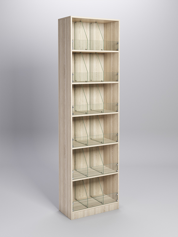 Стеллаж для конфет и орехов представляет из себя комбинацию Стеллажа «Эконом» №1 и вставок-конфетниц, которые являются отдельными элементами конструкции и ставятся на полки стеллажа. Ширина каждой застекленной ячейки — 205мм, высота каждой ячейки — 345мм. Общее кол-во ячеек в представленном стеллаже — 16 шт.